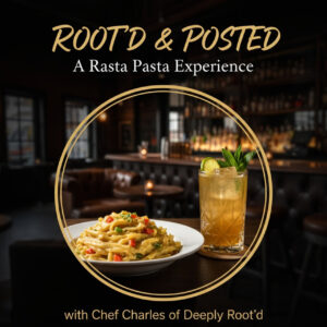 Join Chef Charles of Deeply Root’d for a Rasta Pasta Experience. Saturday, November 22nd. 6:00-8:30 pm. Learn. Cook. Eat. Take Home. Early Bird $65.