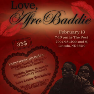 We are so backAFROBADDIE is going to be in Lincoln on February 13 for a night of loveBring your boo or bestie to The Post for a delicious meal provided by Deeply Root’d, a sweet treat by the lovely lil D’s Brownies, and top it all off with a letter writing activity and of course the best music vibes from ...